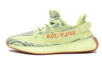 Kanye West?????s Yeezy Boost 350 V2 in Semi Frozen Yellow first hit stores in November 2017, with a restock that released on December 14, 2018. Dressed in adidas????? signature Primeknit upper, the lifestyle runner is finished in an energetic bright yellow hue, one that extends to the laces, heel tab, and Boost-infused ribbed rubber midsole. Zebra-like black stripes add another design dimension to the upper, along with a tonal side stripe emblazoned with ?????SPLY 350????? in reverse red print. A gum rubber outsole adds grippy traction to the eye-catching design.