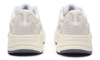 Music and fashion icon Kanye West debuted the Yeezy Boost 700 at his Yeezy Season 5 fashion show in February 2017. This 'Analog' colorway released April 2019, and provides a monochromatic look to the acclaimed shoe. Dressed in shades of off white, the upper features a variety of panels constructed of leather, mesh, suede with a small hit of reflective material near the heel. Full-length Boost cushioning is embedded in the signature chunky midsole while a black rubber outsole provides contrast.