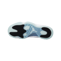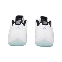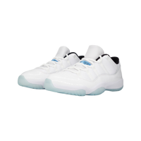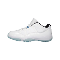The Air Jordan 11 Low Legend Blue features an all-white upper constructed of smooth leather and patent leather. Jumpman and ?aa??23?aa?? insignias are displayed on the back of the ankle. A white midsole and an ?aa??icy?aa?? translucent outsole complete the design.