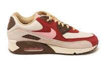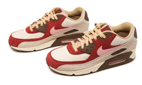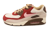 The deliciously dope retro features a distinct red, pink, and white palette, replicating a sizzling plate of pork belly. The off-white leather base surrounds pink leather Swooshes and red suede overlays. Khaki laces and and brown TPU accents resemble bacon?aa??s marbling, while Air Max heel branding rounds off the look for this breakfast-inspired theme.