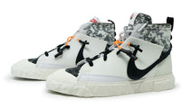 This Nike Blazer Mid features an eye-catching morphed Swoosh logo on the sides, camouflage-styled collar and tongues atop a bubbly midsole and toe cap. The shoe is completed with two-tone laces and co-branded heels.