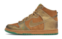 Limited to just 777 pairs, the Dunk High Pro SB ??Lucky???released in July 2004 alongside a contrasting ??Unlucky???colorway. The high-top features simple color blocking throughout the upper, highlighted by metallic gold overlays atop a suede construction in Wheat. Contrasting green is applied to the embroidered ??????on the lateral forefoot as well as the rubber outsole underfoot.